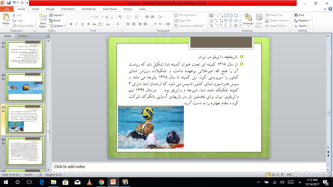 مجموعه زیر یک پاور پویینت حرفه ای شامل بیست اسلاید پر محتوا همراه با عکس های مرتبط می باشد که اختصاصا جهت مشتریان رشته ورزشی انتخاب شده است . در اینجا می توانید چند عکس از این پاور پویینت را ببینید: