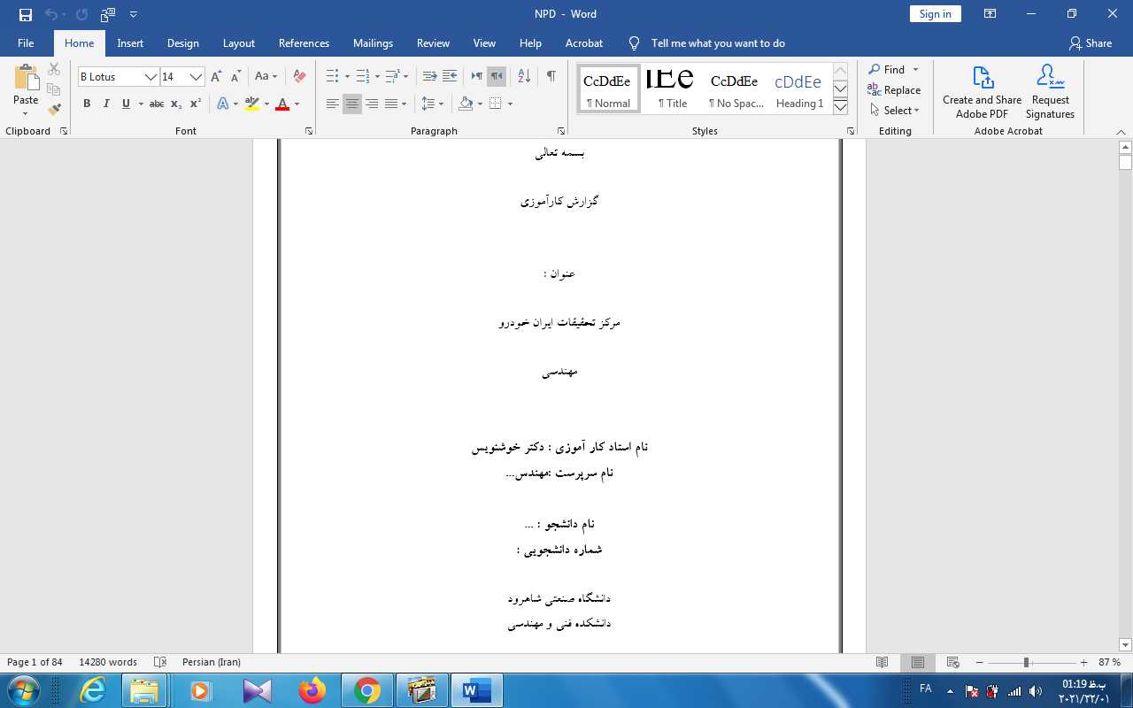 عنوان فایل :گزارش کارآموزی مرکز تحقيقات ايران خودرو