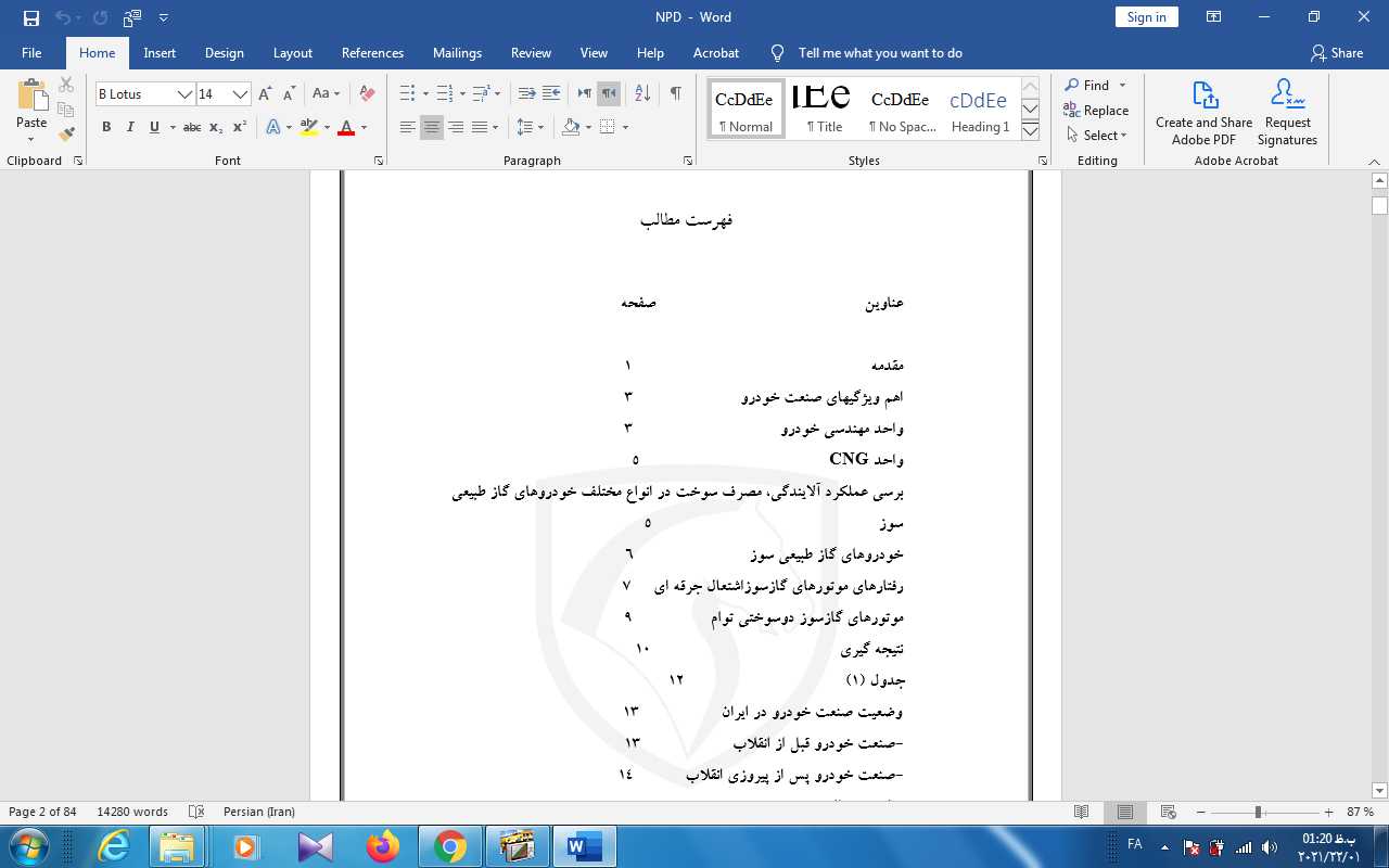 تذکر : صفحات ذکر شده در فهرست این تحقیق، به دلیل اینکه نسخه اولیه با ورد 2007 نوشته شده است، ممکن است دقیقا صحیح نباشد و مقداری جابجایی وجود داشته باشد.